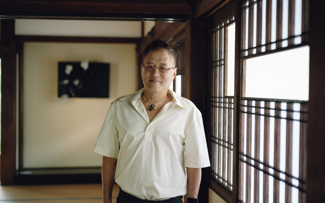 Artist Taiji Terasaki at Ryosokuin Temple in Kyoto, Japan. Photo by Mitsuru Wakabayashi
