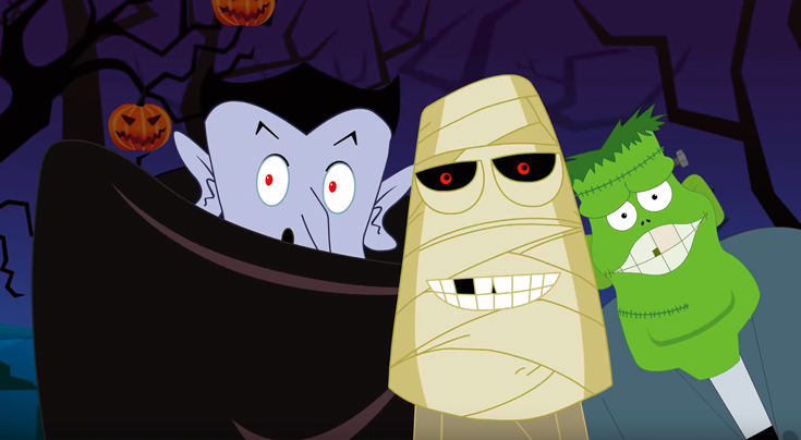 This cartoon sends my son into an ecstatic jumping frenzy. He says repeatedly one of the clearest words in his limited lexicon: “Halloween.”